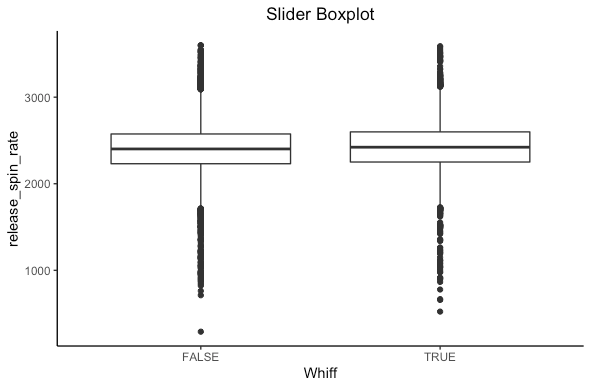 swings[swings$swing_miss_tf == TRUE & swings$pitch_name == "Slider", "release_spin_rate"] and swings[swings$swing_miss_tf == FALSE & swings$pitch_name == "Slider", "release_spin_rate"]