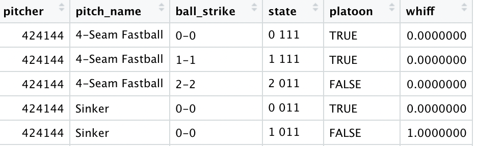 So in a two strike count they are throwing a four-seam fastball the most followed by the slider.